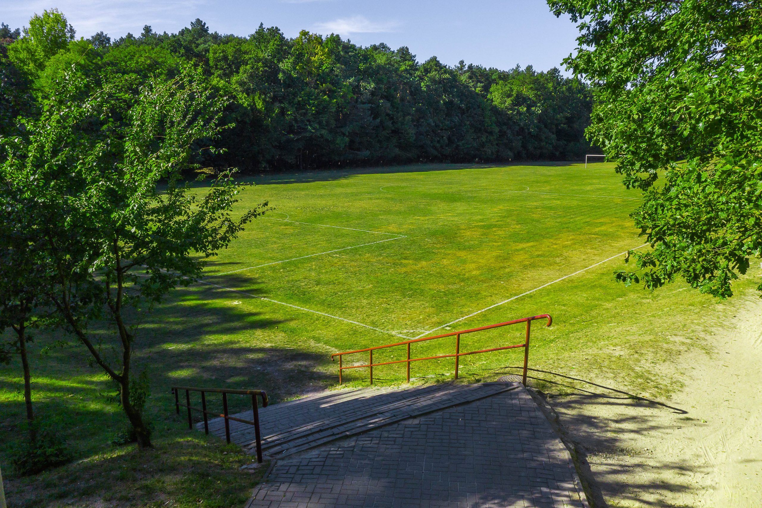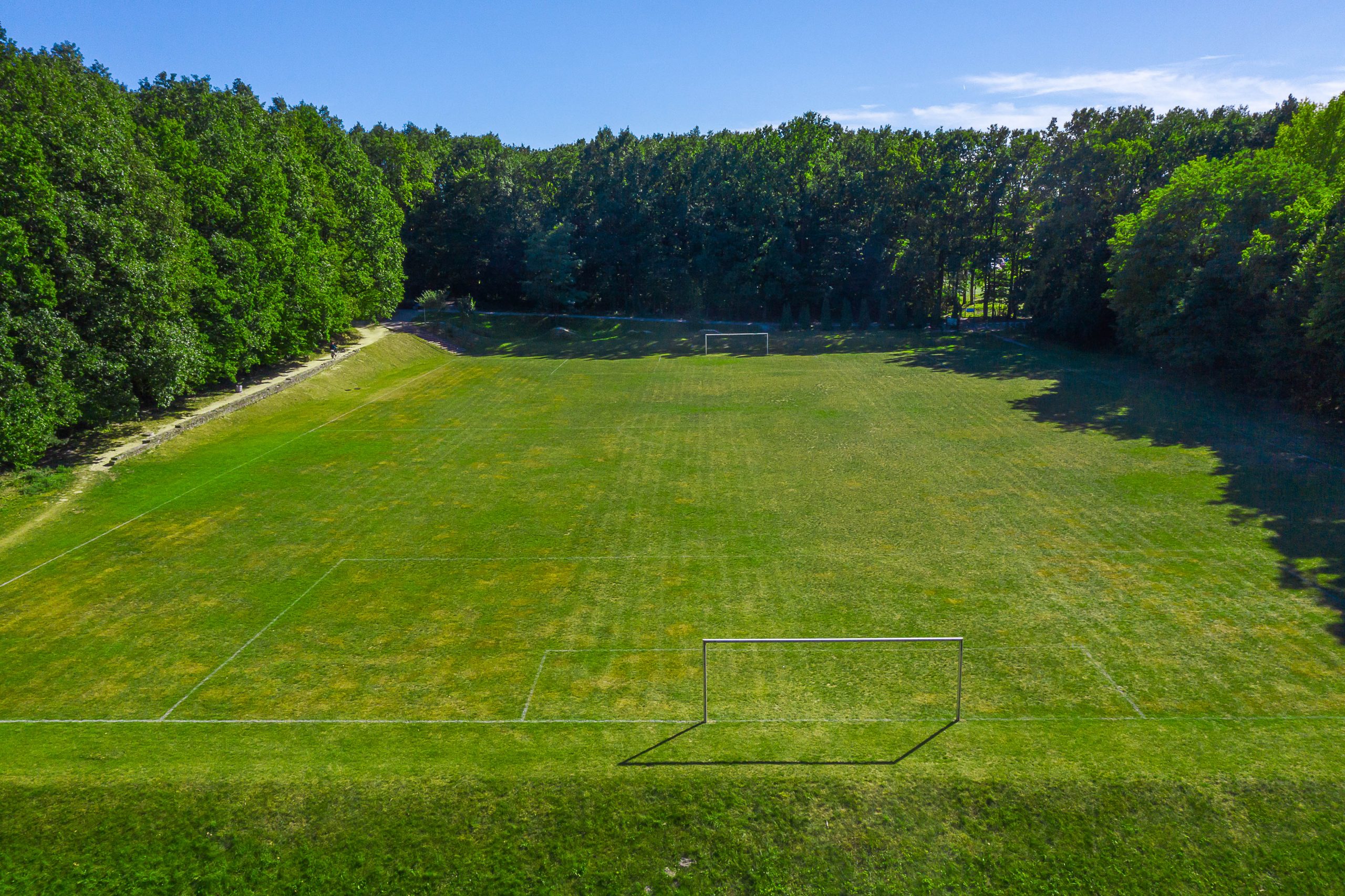 - boisko piłkarskie o nawierzchni trawiastej o wymiarach około 70,0 m x 100,0 m wraz z tulejami do obsadzania bramek.