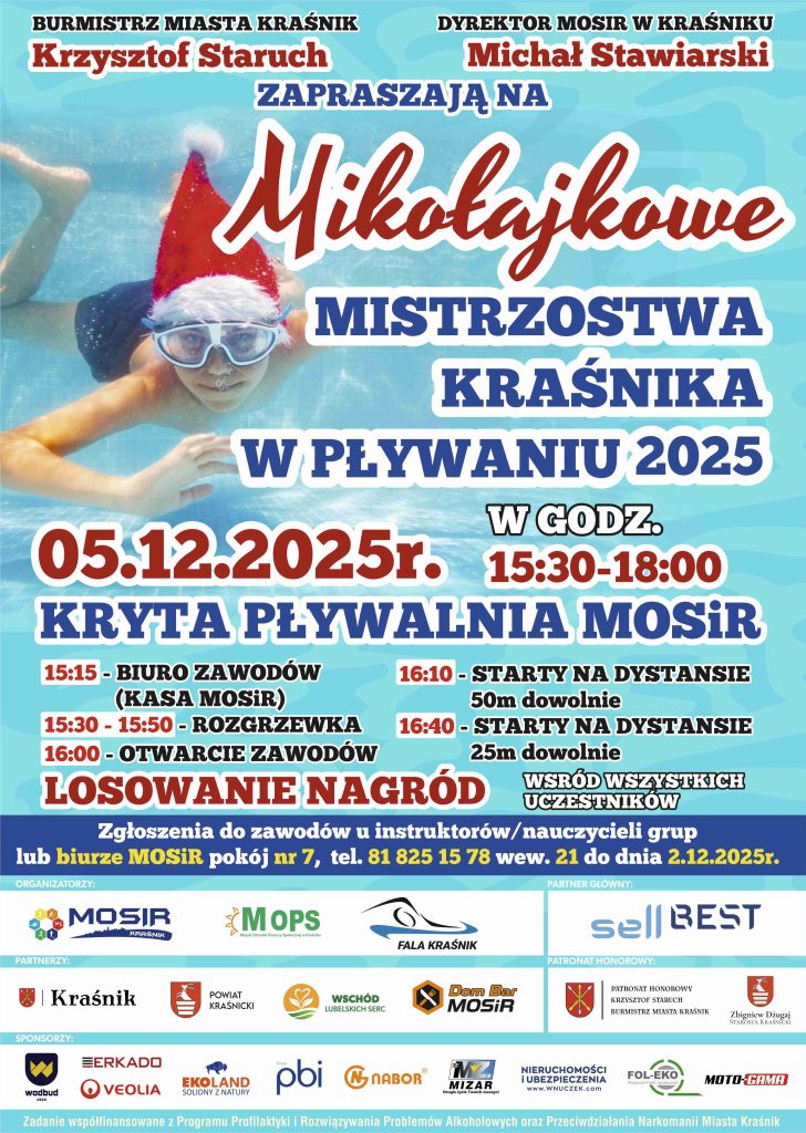 ZAPRASZAMY na Mikołajkowe Mistrzostwa Kraśnika w Pływaniu 2025!